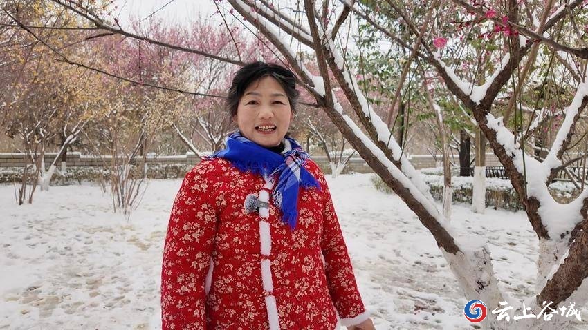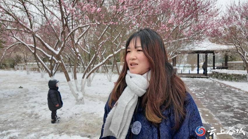 市民黄莲说:“今天想来看一看这个梅花,这么好的景、这么好的雪,好久都没有遇上,今天时间充沛,就和姐妹们一起来逛逛。”