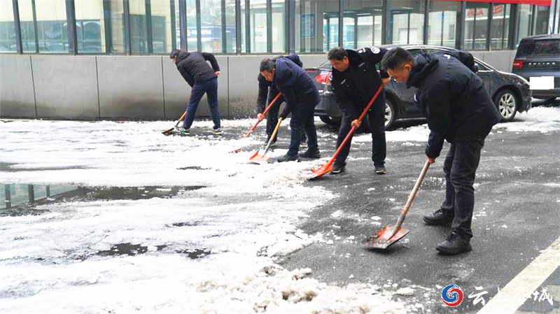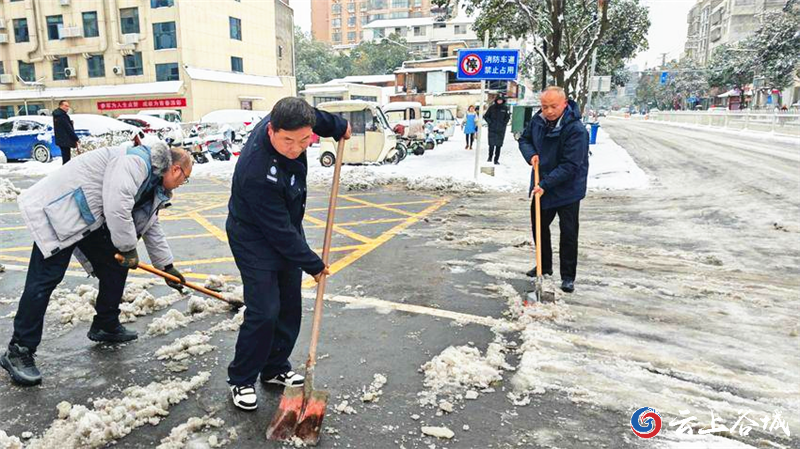 为守护“生命通道”,谷城县中医医院干部职工迅速行动,开展防滑、除雪工作,全力保障“生命通道”畅通。