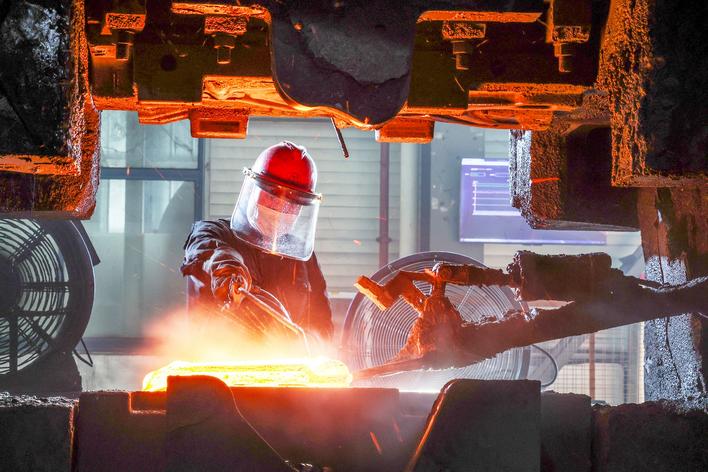 湖北三环锻造有限公司车间正在满负荷运转生产锻件