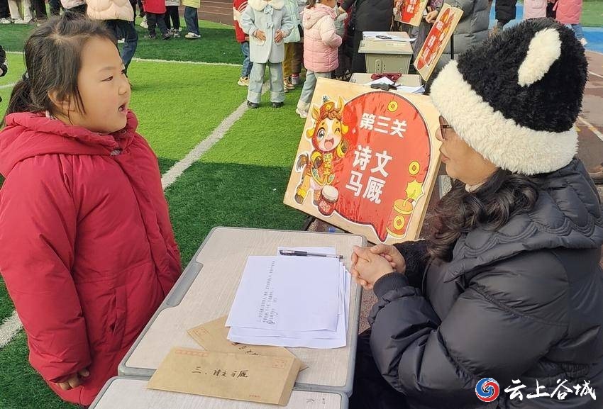 冬日校园暖意浓,趣味闯关乐无穷。1月26日,谷城县城关镇中华路小学的操场上一片欢声笑语,一、二年级的孩子们手拿“闯关卡”,在轻松愉快的游戏中完成了他们的期末测评。