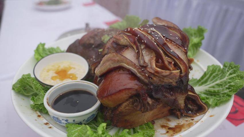 游客陈女士开心地说:“我们品尝了大赛中的菜肴,尤其是腊猪蹄炖土豆和风干鱼,味道特别鲜美!”