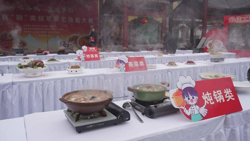 比赛分炒菜、炖菜、蒸菜、砂锅和干锅几大类别,来自全县各地的50余名农家乐主厨同台竞技,将本地出产的腊猪蹄、风干鱼、鲜蔬等食材,化为一道道色香味俱全的农家盛宴。