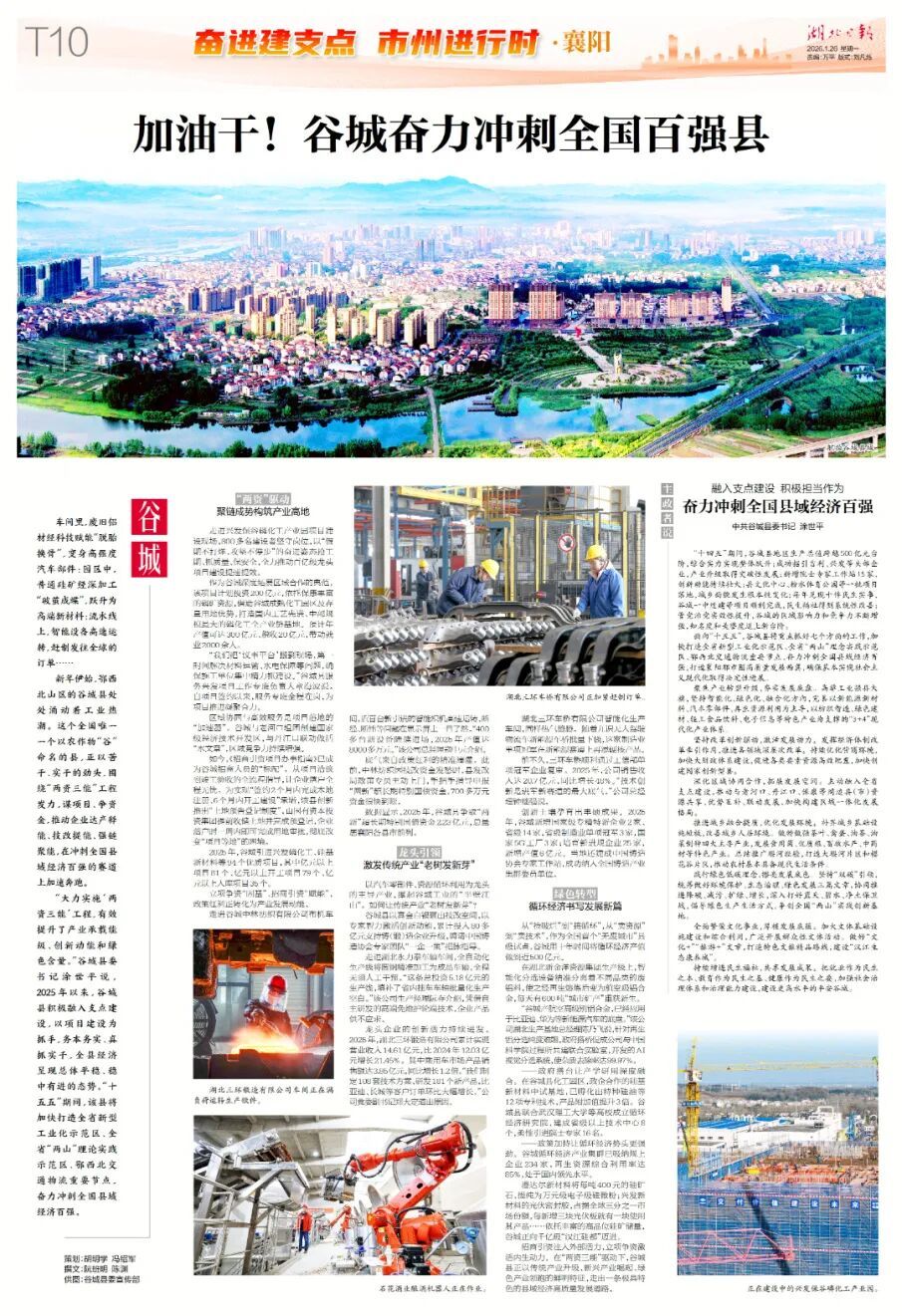 面向“十五五”,谷城县将重点抓好七个方面的工作,加快打造全省新型工业化示范区、全省“两山”理念实践示范区、鄂西北交通物流重要节点,奋力冲刺全国县域经济百强,打造襄阳都市圈高质量发展西翼,确保基本实现社会主义现代化取得决定性进展。