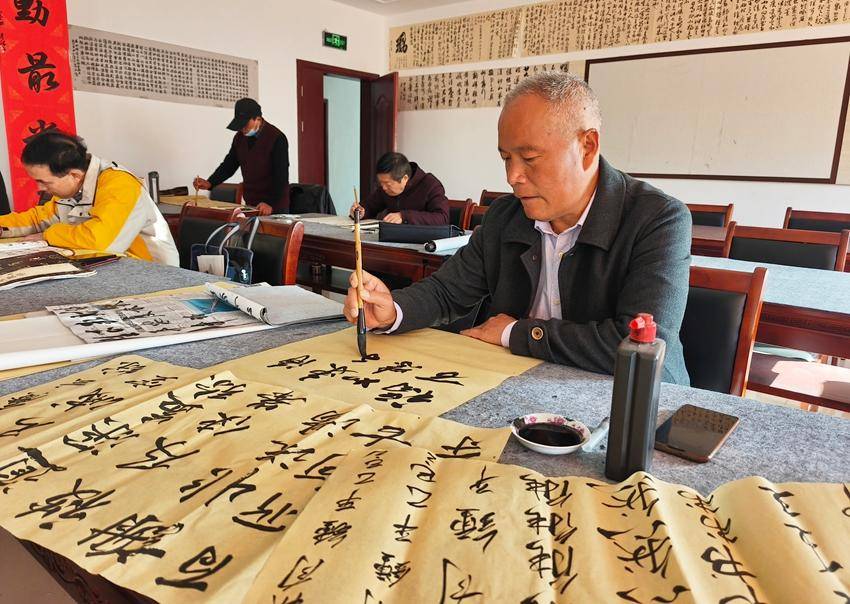 60多岁的退休干部、共产党员刘昊,自幼喜爱书法,自学多年却难有长进。在丁彦清老师的悉心指导下,他沉下心磨笔墨、纠笔法,不仅书法功底日渐深厚,性子也变得沉稳平和,在一撇一捺间寻得了独属于晚年的乐趣。