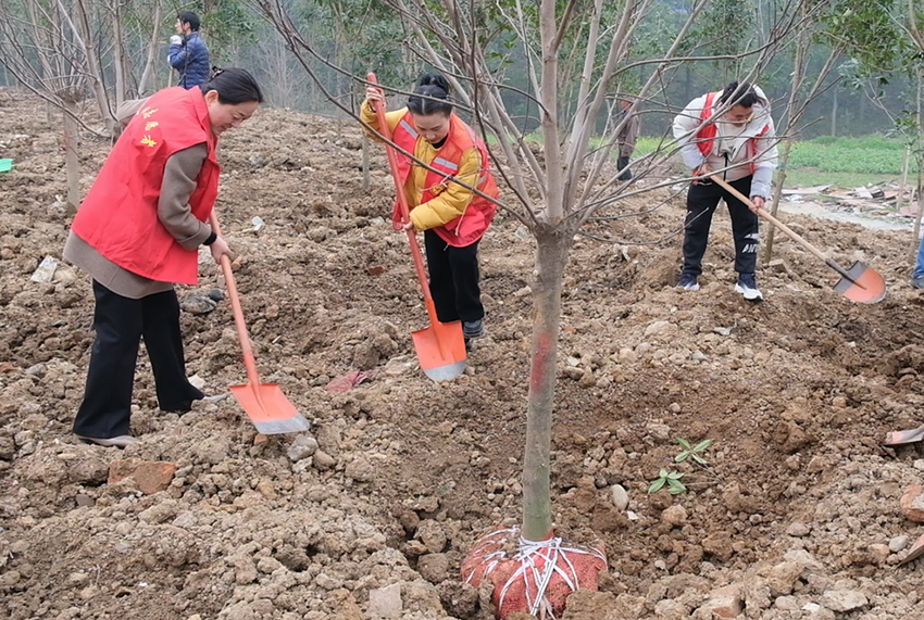 县自然资源和规划局国土绿化股负责人蔡金虎说:“今天栽种的品种主要是桂花和红玉兰,共2600余株。2026年全县计划完成110万株,截至目前已完成80余万株。”