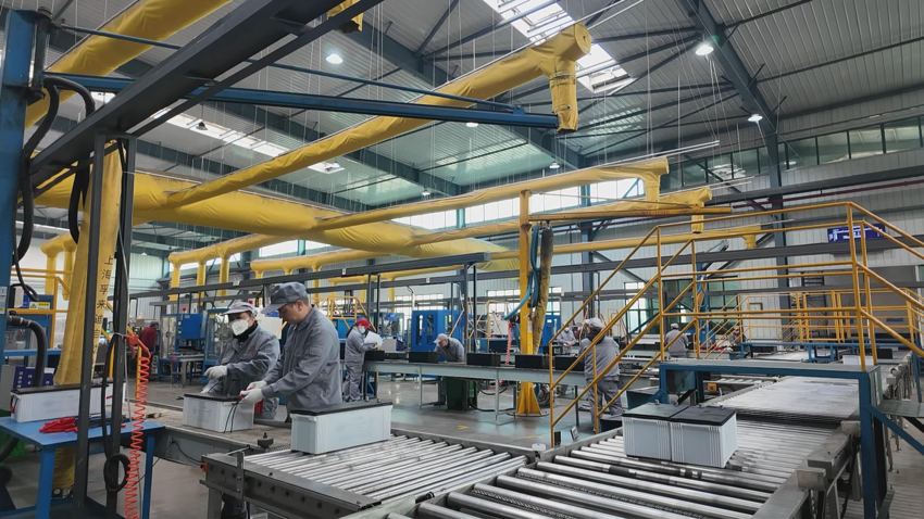 在蓄电池产业领域,骆驼集团华中蓄电池有限公司同样满产满销、势头强劲。生产车间内自动化生产线高速运转,机械臂精准完成极板加工、电池组装等工序,4条核心生产线全部开工,员工实行两班倒作业,24小时不间断生产。