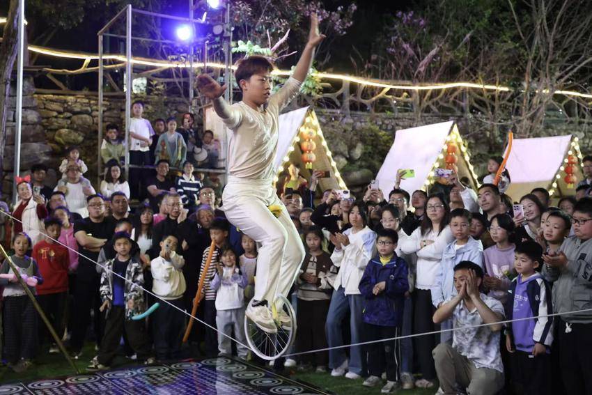 此外,景区精心筹备了多项非遗与互动节目:杂技表演、川剧变脸、打铁花等传统艺术节目轮番上演,精彩纷呈;套鸭、兑换银票等趣味互动体验活动,更是让游客流连忘返。数据显示,假期三天,景区接待住宿游客总量已突破1000人,景区民俗和农家民俗都被利用起来了。