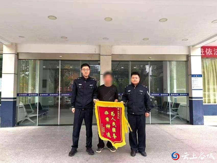 近日,为表达自己的感激之情,付某专程制作了一面写有“为人民服务 办案神速”的锦旗,送到城关派出所民辅警手中,用最朴素的方式,向辛勤付出的民警表达谢意。