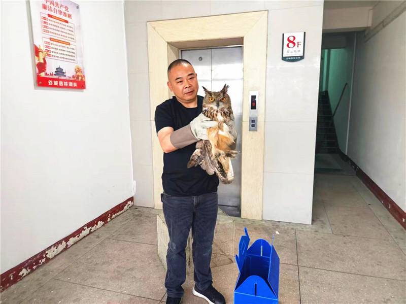 谷城县公安局城北派出所民警王世杰说:“雕鸮是保护动物,也是维护生态平衡的‘卫士’,这次它误入民宅被困,其实是捕食时没注意地形。在这里也提醒大家,遇到野生动物被困或者受伤,千万不要私自捕捉、驱赶,及时拨打110或者相关救助电话,让专业人员来处置,共同守护野生动物。”