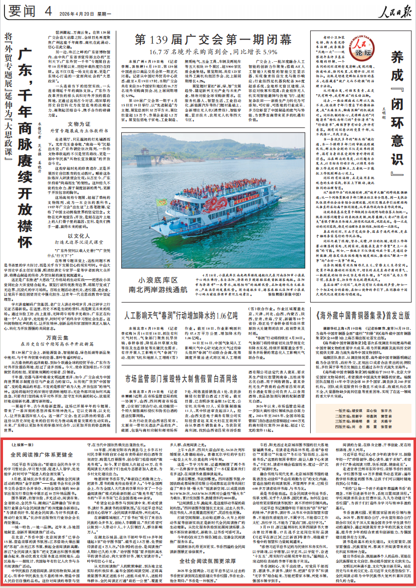 4月20日至22日,第五届全民阅读大会在江西南昌市举办,“全民阅读活动周”同步启动。