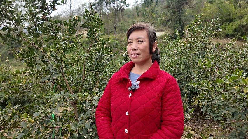 紫金镇观音堂村村民叶生娥说:“多年都在外面打工,现在年龄大了,回老家在家干活,既能照顾家人,又能在这里采摘茶果补贴家用。”