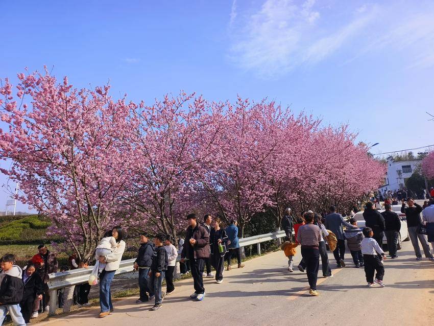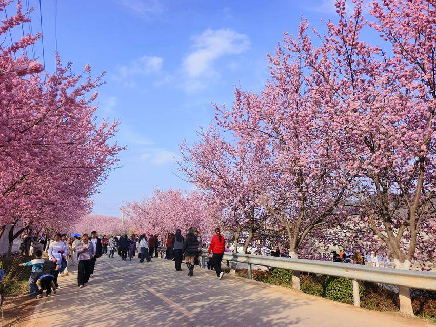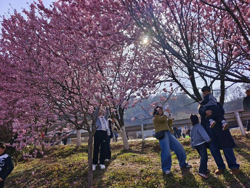 “我们是特意从县城过来赏樱花的,确实不虚此行,樱花非常美,空气里都是春天的味道。”正在和朋友拍照打卡的游客王女士兴奋地说道。