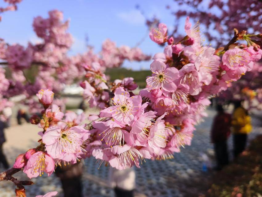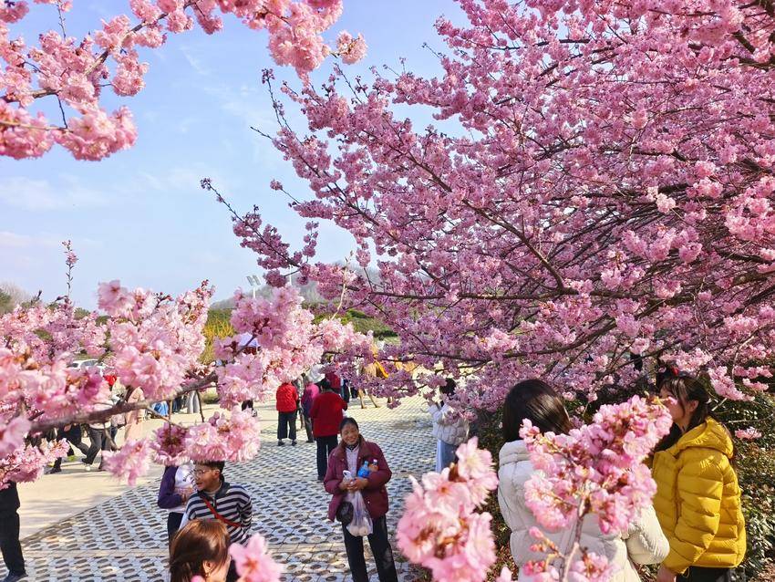 “天气这么好,樱花开得特别漂亮,粉粉嫩嫩的,拍照特别出片!”专程前来赏樱的游客张女士笑着说。