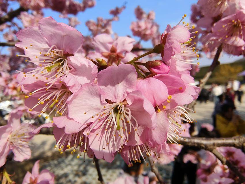 春风有信,花开有期。2月24日,谷城县城关镇樱花谷风景区内,“粉红佳人”樱花迎风绽放,粉霞满枝、美不胜收,吸引众多游客前来踏青赏樱、拍照打卡,景区内游人如织、热闹非凡。
