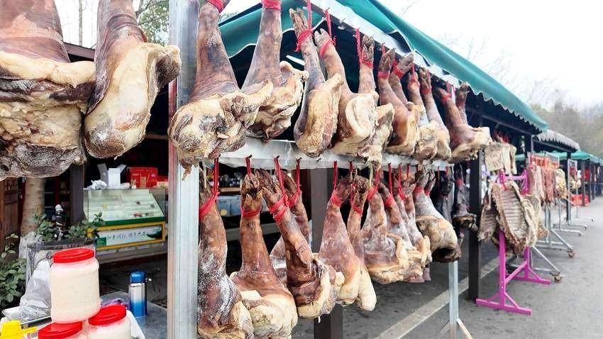 游客们围在摊位前:“这是真正的土猪肉吗?”“怎么卖的?”“能快递吗?”我一边招呼客人,一边帮他们扫码下单。仅年货节当天,线上线下就销售了三十多只腊蹄子,收入近万元。