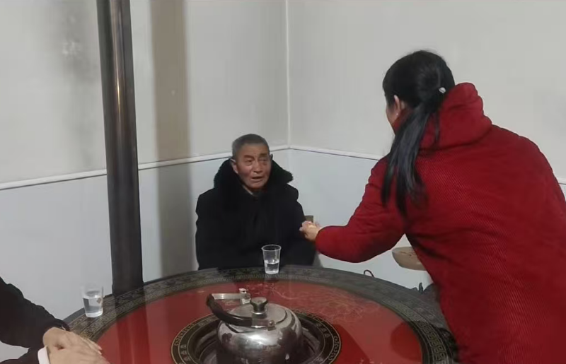 当晚,蒋家坡村村民陈德梅发现一位神情茫然、言语不畅的陌生老人独自徘徊。考虑到夜色渐深、气温偏低,老人年事已高且行动不便,她立即上前耐心询问。老人患有小儿麻痹症,且沟通十分困难,无法说出姓名与家庭住址。陈德梅没有丝毫犹豫,一边迅速联系村干部,一边将老人请到家中,端上热气腾腾的饭菜,搀扶老人围坐在火炉旁取暖喝茶,并轻声陪伴安抚,让老人在陌生之地感受到家一般的温暖。
