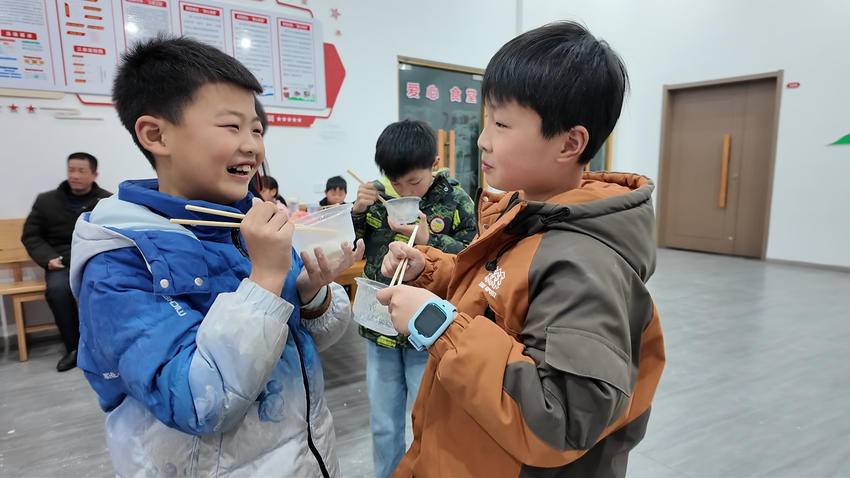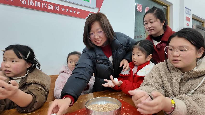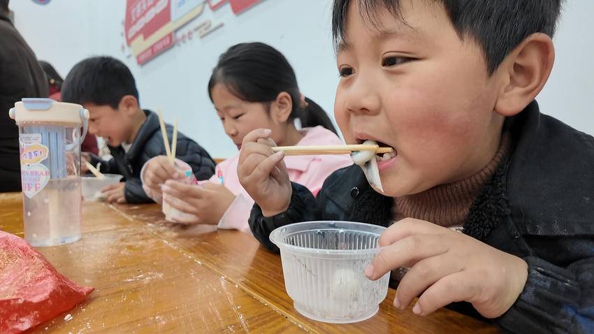 学生张咏春开心地说:“自己包的汤圆就是不一样,甜到了心里!今天和村里的小伙伴们一起学知识、包汤圆,太开心了。”