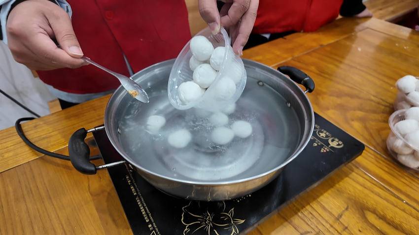 另一边,志愿者将包好的汤圆轻放入锅,随着水温升高,一个个汤圆渐渐浮起,不一会儿,浓郁的糯米香和馅料的甜香便弥漫了整个村委会。汤圆煮熟后,志愿者快速分碗,依次送到孩子与村民手中。