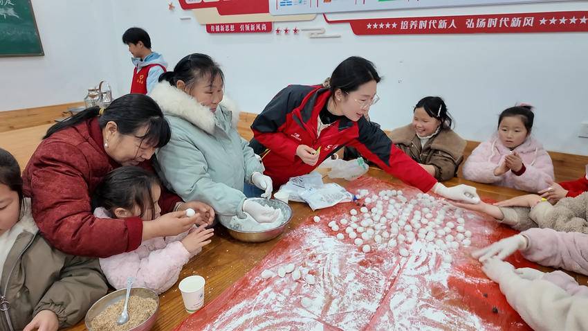 将军山村三组孩子家长陈云说:“平时工作忙,很少有机会陪孩子,今天和孩子一起包汤圆,看着他笨手笨脚却格外认真的样子,特别暖心。让我们和孩子都感受到了节日的温暖。”