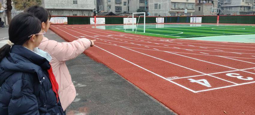 “姐姐,你看学校的新运动场。”