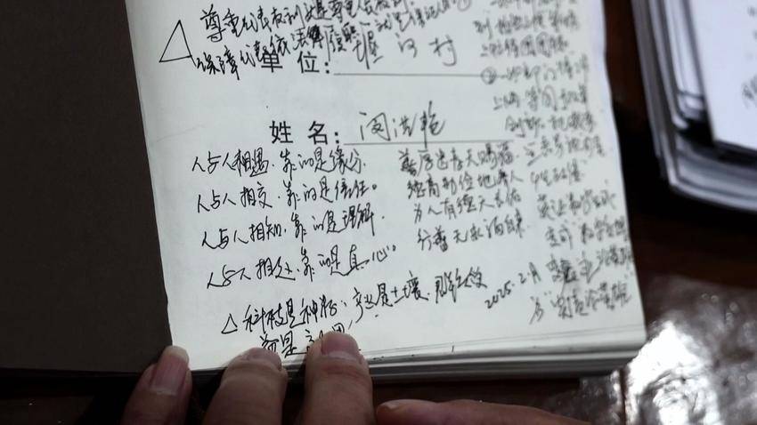 谷城县五山镇堰河村党委书记闵洪艳告诉记者:“我是一直都有记笔记的习惯,把我的日常的工作,特别是把我的一些思考记在里边。我觉得它记载着历史,不但我现在这样,我要求我们的干部现在也是这样。”