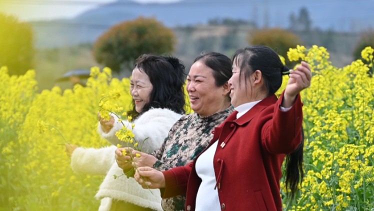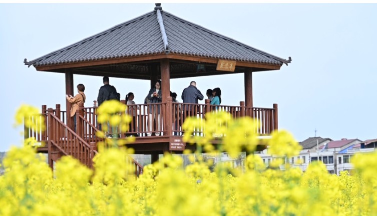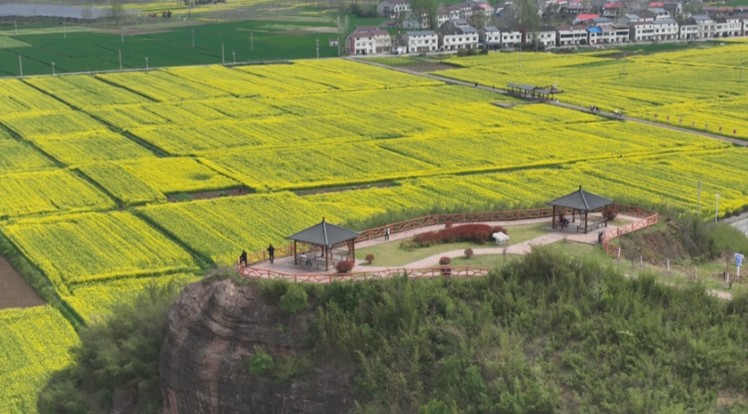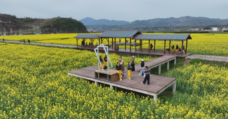 一朵油菜花,激活乡村振兴路。作为盛康镇油菜种植重点村,近年来,张棚村始终秉持“以花兴旅、以旅促农”的发展理念,推行“党支部+合作社+农户”的发展模式,规模化种植油菜1000亩。为持续提升游客体验,村里统筹推进基础设施提档升级,先后修建回龙观登山栈道、花海迷宫、休闲廊亭等,新增生态停车场,还巧妙修复废弃砖窑厂,打造农耕文化游园,让“赏花经济”更具吸引力和体验感。同时,村里依托科技赋能农业,全力保障油菜健康生长、实现丰产丰收,同步守护好花海景观品质,真正实现了生态效益与经济效益双提升。