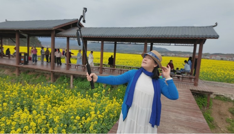 “我是从丹江口跟朋友慕名而来,这一片花海太震撼了,漂亮得很。黄灿灿的,拍照拍视频很美。下次我们还要带朋友一起来。”游客赵永兰难掩兴奋。