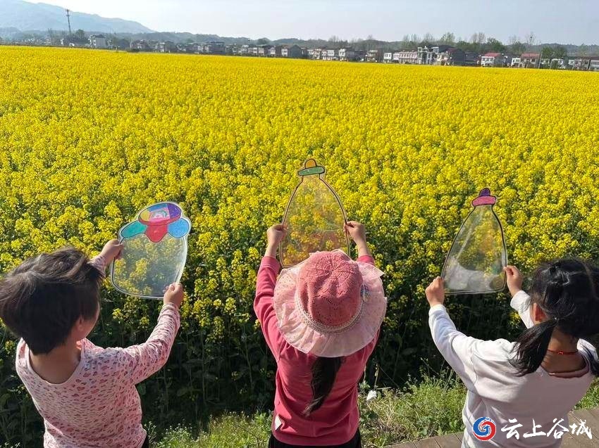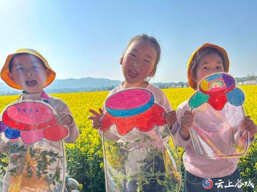 活动中,孩子们走出教室,化身春日探险家,在校园周边寻找春天。嫩绿的草芽、绽放的花朵、轻柔的春风,都让他们充满惊喜。孩子们带着专属的“春天瓶子”走进金灿灿的油菜花田,在一望无际的油菜花海中继续寻找春天的踪迹。他们穿梭在花丛间,仔细收集飘落的油菜花瓣、鲜嫩的枝叶,还发现了藏在花茎上的小瓢虫,小心翼翼地将春日的美好一一珍藏。