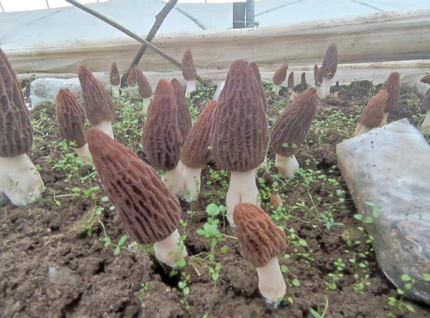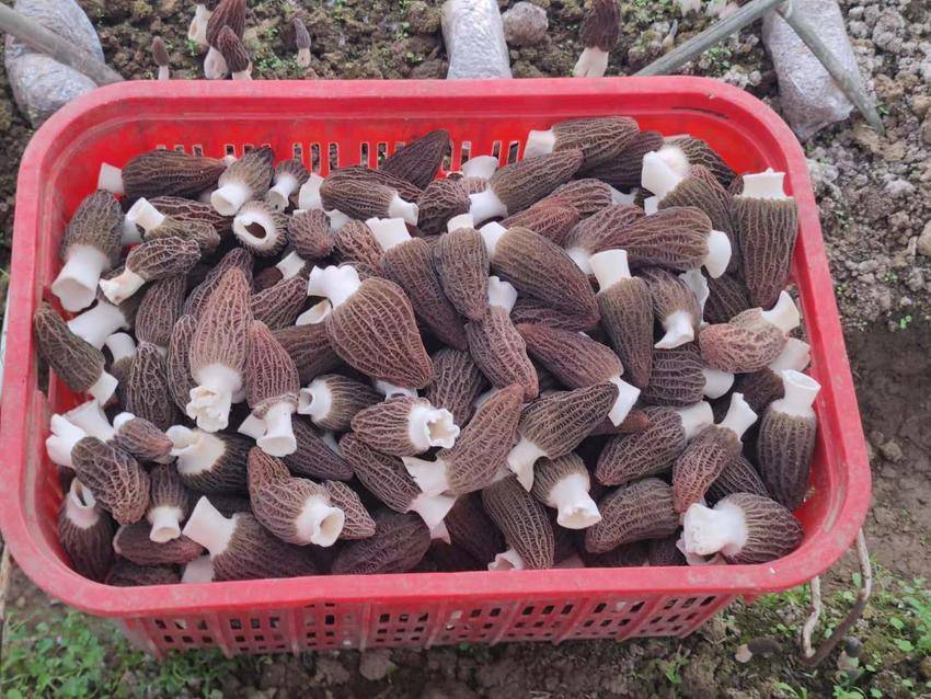 走进种植大棚,暖意融融,一朵朵形态规整、菌盖密布蜂窝状纹理的羊肚菌错落生长在菌床上,褐色菌帽质地紧实,香气醇厚,品相优良。村民们戴着手套,小心翼翼地将成熟的羊肚菌从菌床上摘下,放进竹篮里,动作娴熟利落,脸上满是丰收的笑容。
