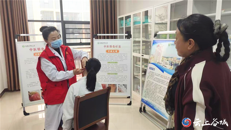 讲座后,医护人员为老年学员开展耳穴压豆、刮痧、艾灸、拔罐、穴位按摩等免费体验,他们贴心的服务受到大家一致好评。
