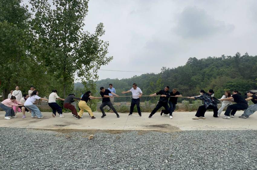 中午时分,队伍移步艾家湾明清古村落。青石板路上,拔河比赛的号子声震响山谷,滚铁环的孩童你追我赶,沙包在空中划出欢快弧线。