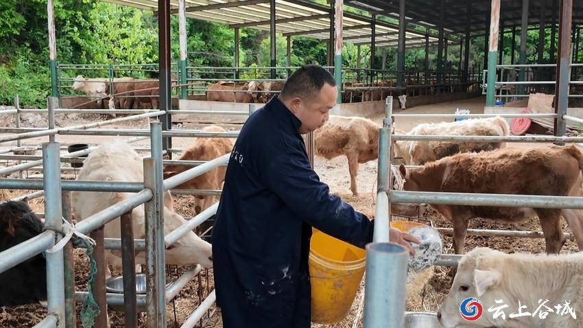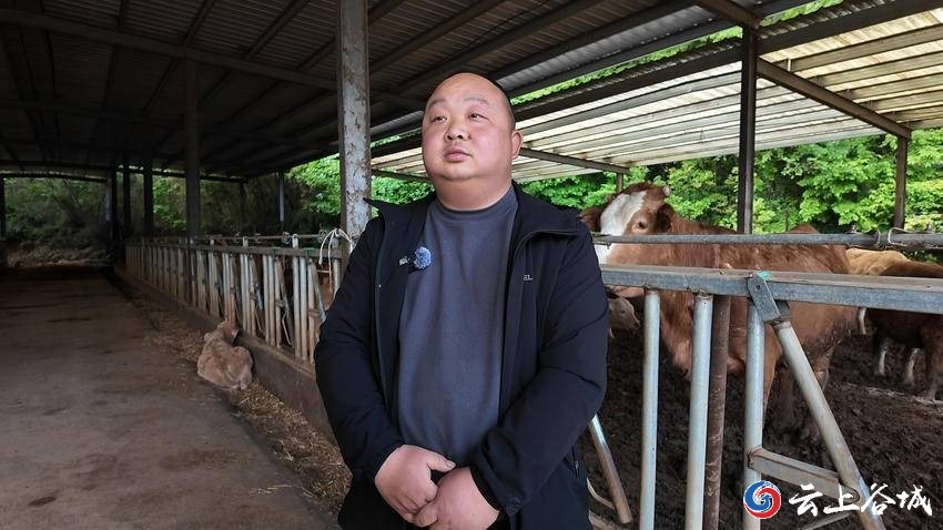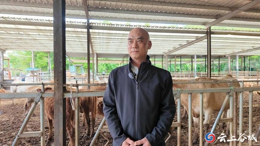 走进万寿桥村的生态养殖基地,童磊身着工作服,仔细查看每一头肉牛的进食情况,时不时弯腰抚摸牛背,动作熟练而细致。