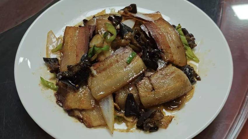 赵湾炒腊肉则选用本地土猪肉,经松柏枝慢熏、风干,带着独有的山林烟火气,切薄片与青椒、蒜苗大火爆炒,油脂煸得透亮,肉香四溢,肥而不腻、瘦而不柴,咸香中带着微甜,堪称地道下饭菜。