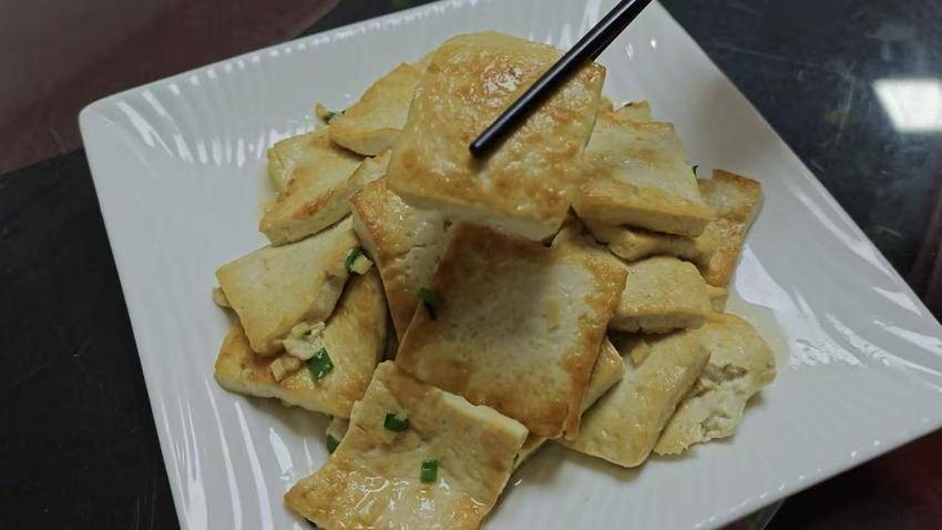 柴火煎豆腐选用本地石磨卤水豆腐,经柴火灶慢煎至两面金黄,外酥里嫩,淡淡的豆香与烟火气交织,每一块都吸足调味汤汁,是农家餐桌上最朴实动人的味道。